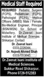 Dr Zeenat Essani Institute Of Medical Sciences is looking for candidates for following posts as per job advertisement published in daily Kawish Newspaper of July 2, 2024 for location Shikarpur, shikarpur Sindh Pakistan: