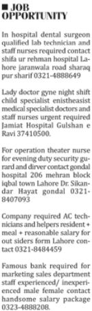 Latest Hospital Clinic Medical Posts Karachi 2025