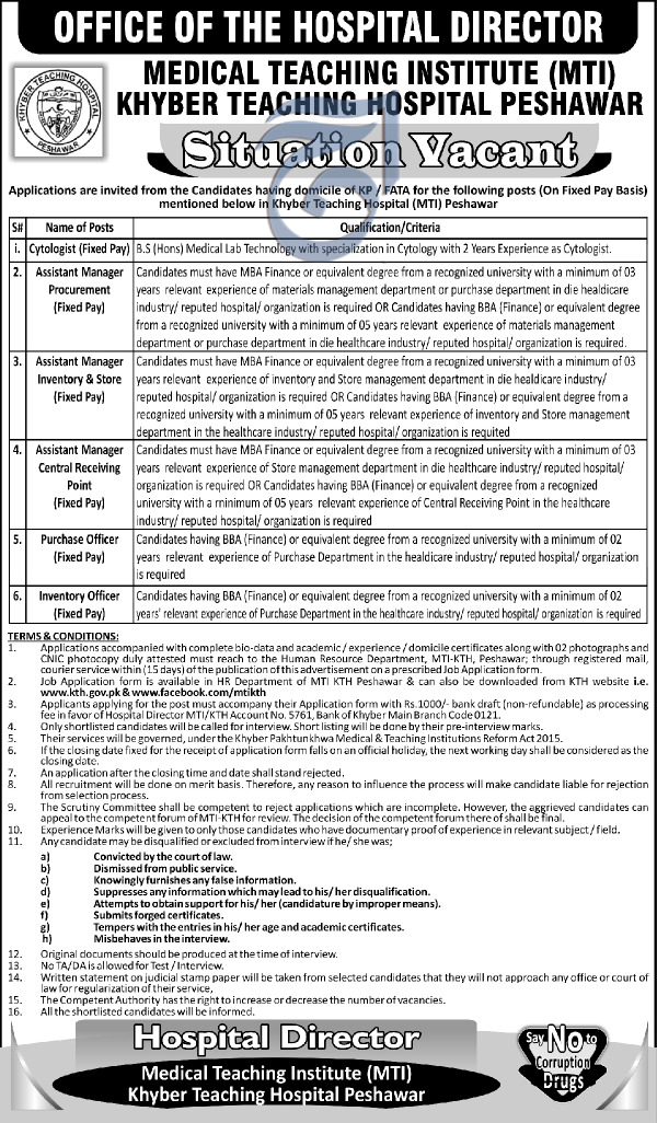 Latest Medical Teaching Institution MTI Management Posts Peshawar 2025