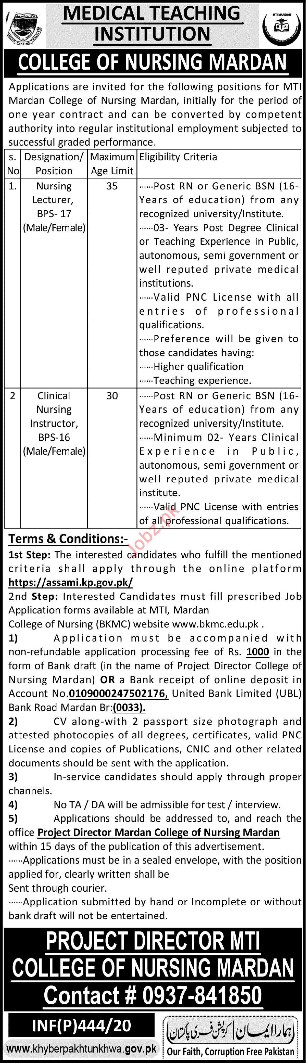 Latest Medical Teaching Institution MTI Teaching Posts Mardan 2025