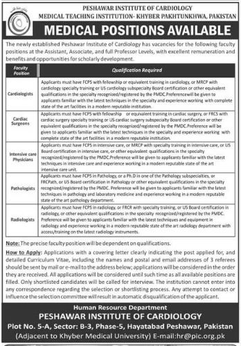 Latest Institute of Cardiology Medical Posts Peshawar 2025