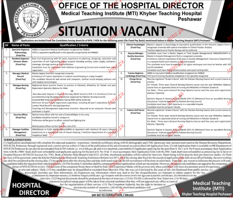Apply as per details in job advertisement. Login to view further details of how to apply via https://www.jobz.pk online.