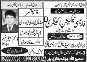 Medical Technician admissions at Bahawalpur Paramedical & Pharmacy College