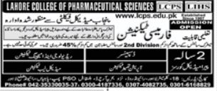 Lahore College of Pharmaceutical Sciences LCPS Pharmacy Technician, Dispenser, Radiology and Imaging Technician, Operation Theater Technician, Medical Lab Technician admissions 2022 has been announced. Students can enroll for admissions in Lahore College of Pharmaceutical Sciences LCPS Lahore Punjab Pakistan for academic year 2022 to continue campus based or online education in Medical College. Students for admissions in Diploma & criteria can apply as per Private institute admission policy 2022 before closing date November 23, 2022 as per advertisement. Read newspaper ad for exact details.