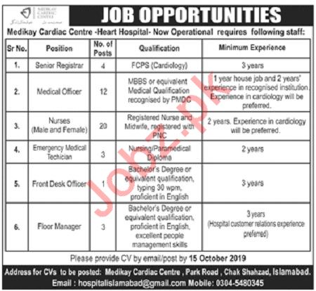 Medikay Cardiac Centre Heart Hospital Islamabad Jobs 2019