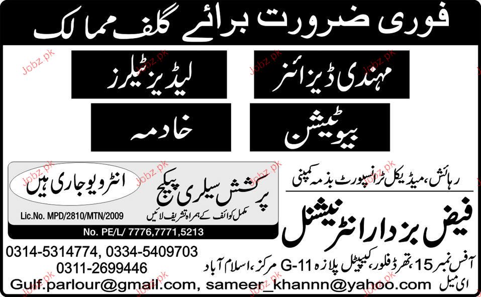 Mehandi Designers, Ladies Tailors Job Opportunity