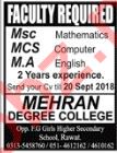 Latest Mehran Degree College Teaching Posts Rawalpindi 2025