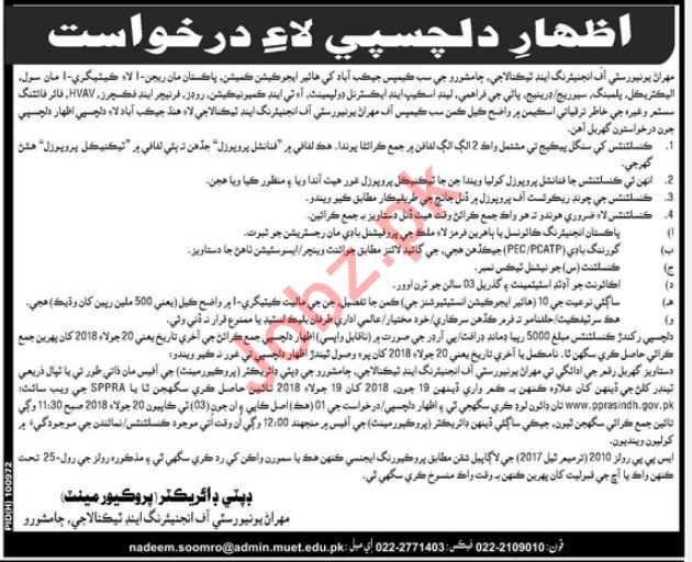 Latest Mehran University of Engineering & Technology Consultant Posts Jamshoro 2025