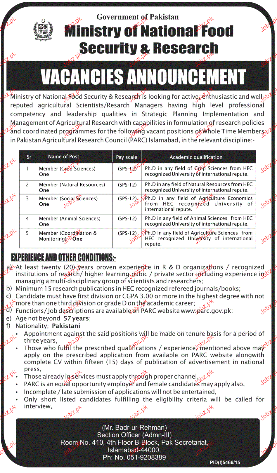 Apply as per details in job advertisement. Login to view further details of how to apply via https://www.jobz.pk online.