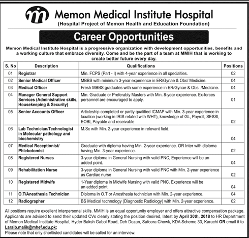 Latest Memon Medical Institute Hospital Medical Posts Karachi 2025