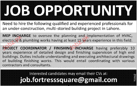 MEP Incharge and Project Coordinator Job Opportunity