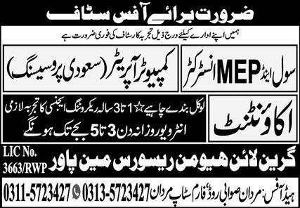 Green Line Human Resource Manpower is looking for candidates for following posts as per job advertisement published in daily Express Newspaper of January 9, 2025 for location Mardan, mardan Khyber Pakhtunkhwa KPK Pakistan: