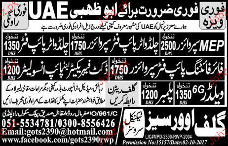 MEP Supervisors, Child Water Pipe Fitter Supervisor Wanted