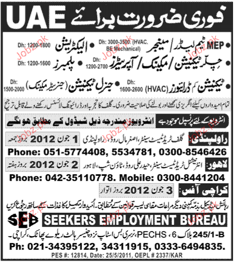 MEP Team Leader, Manager, Electrician, Plumbers Required