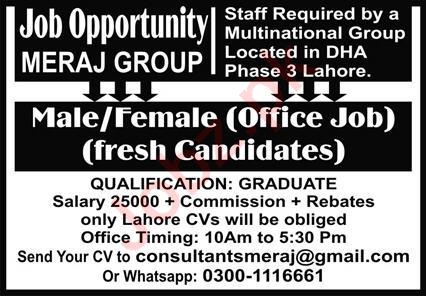 Multinational Group Lahore, lahore Punjab Pakistan invites applications from eligible candidates for the post of male female office job as per advertisement of November 26, 2023 published in daily Express Newspaper. Educational qualifications required Bachelor and Master etc.