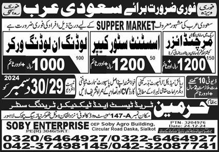 Harmain Trade Test & Technical Training Center jobs advertisement dated about 26 December 2024 in daily Express Newspaper invites application for the vacant post of assistant store keeper, merchandiser and loading unloading worker in Riyadh, tabuk Saudi Arabia. Persons with Intermediate, Bachelor, Matric and BA etc. education can apply.