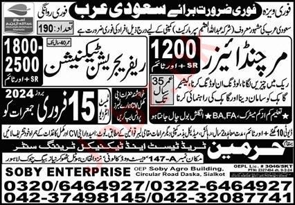 Soby Enterprises Overseas Employment Promoters is looking for candidates for following posts as per job advertisement published in daily Express Newspaper of February 11, 2024 for location Saudi Arabia, saudi arabia Saudi Arabia: