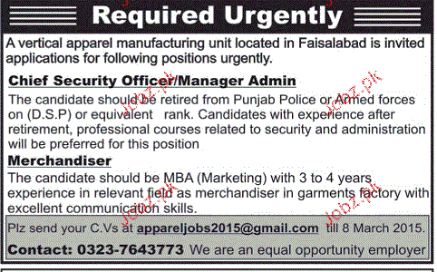 Merchandisers And Chief Security Officer Job Opportunity