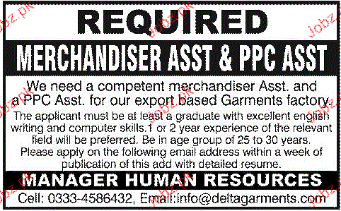 Apply as per details in job advertisement. Login to view further details of how to apply via https://www.jobz.pk online.