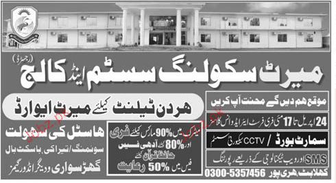 Merit Schooling System and College Admission in Play Group to Matric in Peshawar Read newspaper ad for exact details.