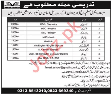 Mesf School Muslim Bagh Balochistan Teaching Jobs 2019