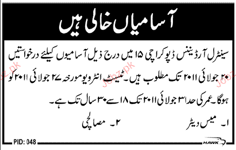 Apply as per details in job advertisement. Login to view further details of how to apply via https://www.jobz.pk online.