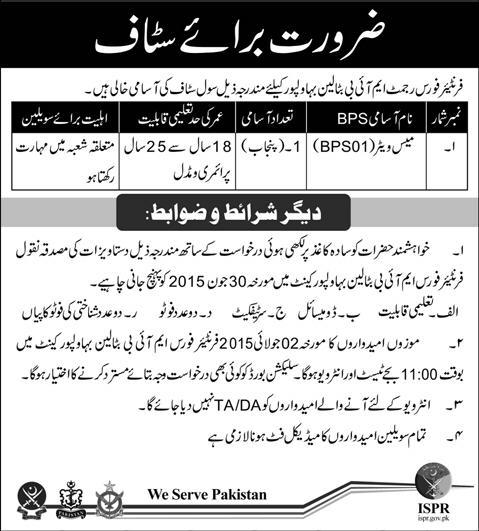 Apply as per details in job advertisement. Login to view further details of how to apply via https://www.jobz.pk online.