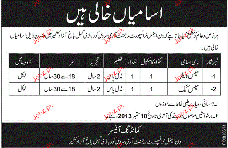 Latest Pakistan Army Posts Bagh 2025