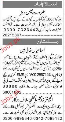 Mess Waiters, Engineers Job Opportunity