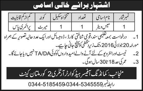 Apply as per details in job advertisement. Login to view further details of how to apply via https://www.jobz.pk online.