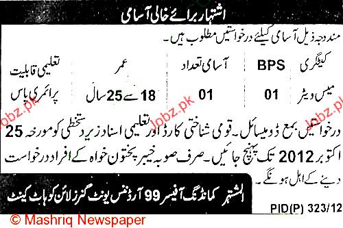 Apply as per details in job advertisement. Login to view further details of how to apply via https://www.jobz.pk online.