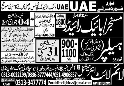LIME LIGHT INTERNATIONAL is looking for candidates for following posts as per job advertisement published in daily Express Newspaper of May 31, 2024 for location Abu Dhabi, abu dhabi UAE: