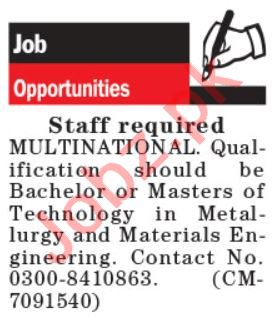 Vacancies in Engineering Company Advertisement December 2020