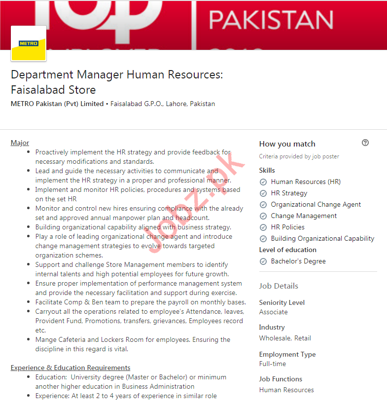 Latest Metro Pakistan Pvt Limited Management Posts Faisalabad 2025
