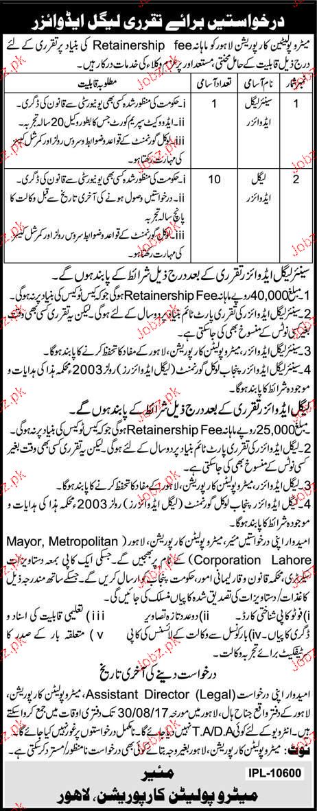 Metropolitan Corporation Lahore MPCL Career Opportunity