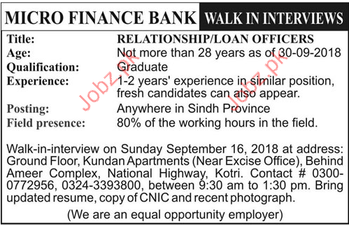 Micro Finance Bank Relationship Officer Jobs 2018