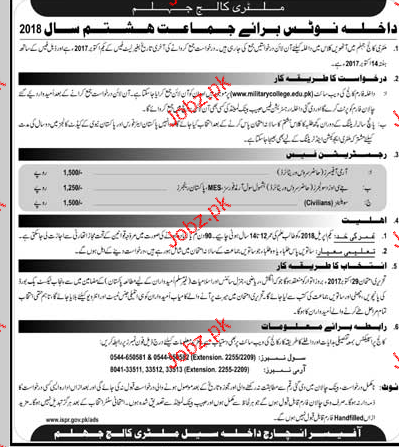 Military College Jhelum Admission in Class VIII in Jhelum. Read newspaper ad for exact details.
