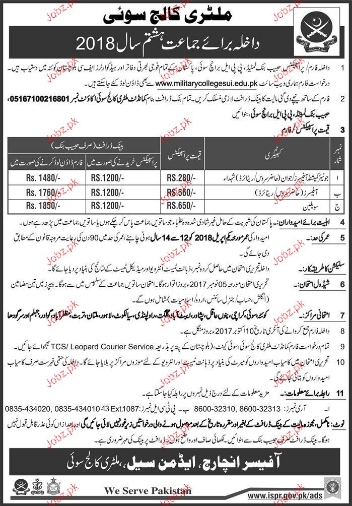 Military College Sui Admission in Class VIII in Sui. Read newspaper ad for exact details.