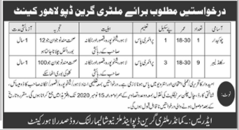 Latest Military Green Depot Army jobs Posts Lahore 2025