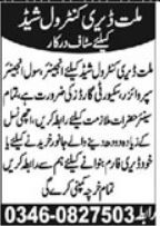 Vacancies in Millat Dairy Control Shed Advertisement June 2021