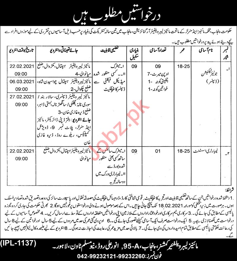 Vacancies in Mines & Minerals Department Advertisement February 2021