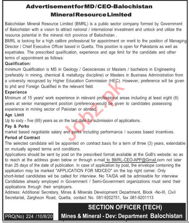 Latest Mines & Mineral Development Department Executive Posts Quetta 2025