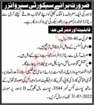 Mining Company Khushab, khushab Punjab Pakistan invites applications from eligible candidates for the post of security supervisor as per advertisement of July 24, 2022 published in daily Nawaiwaqt Newspaper. Matric and Middle etc. educational qualification will be preferred.