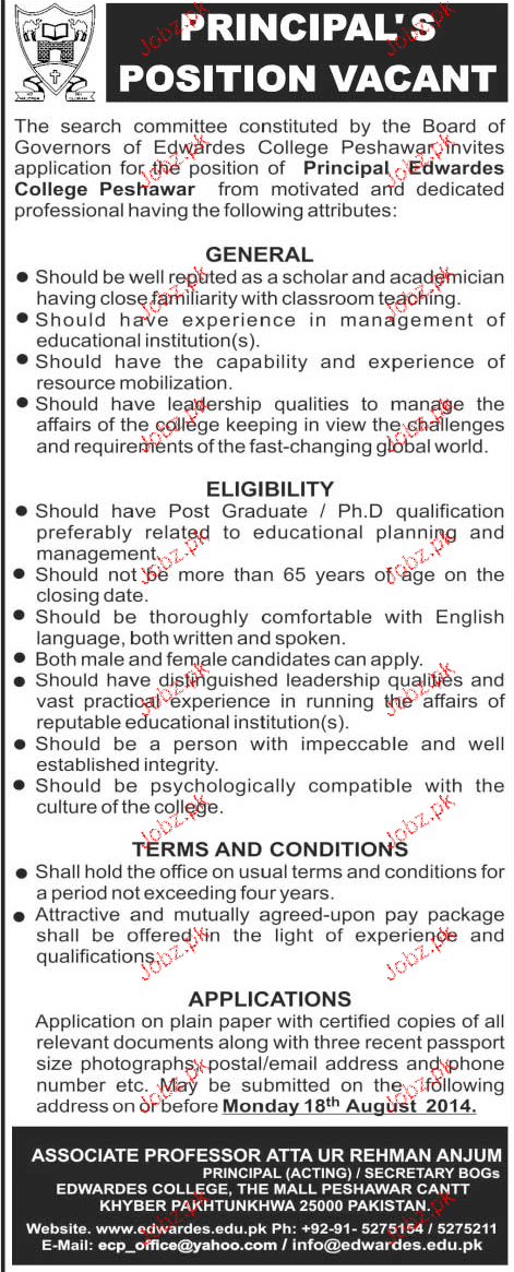 Apply as per details in job advertisement. Login to view further details of how to apply via https://www.jobz.pk online.