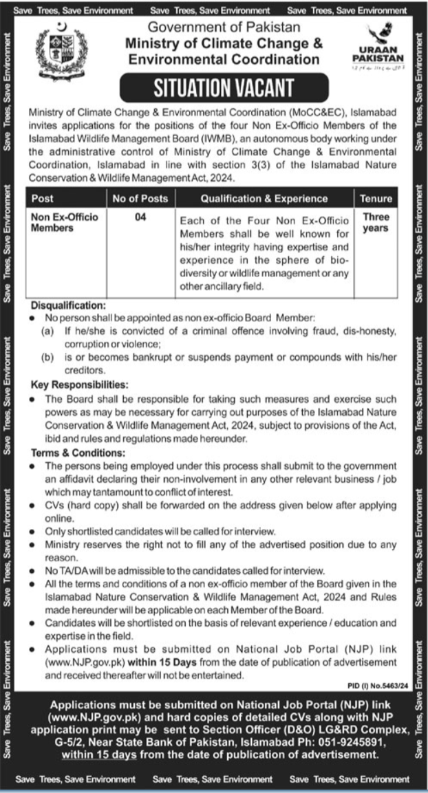 Vacancies in Ministry of Climate Change Advertisement February 2025