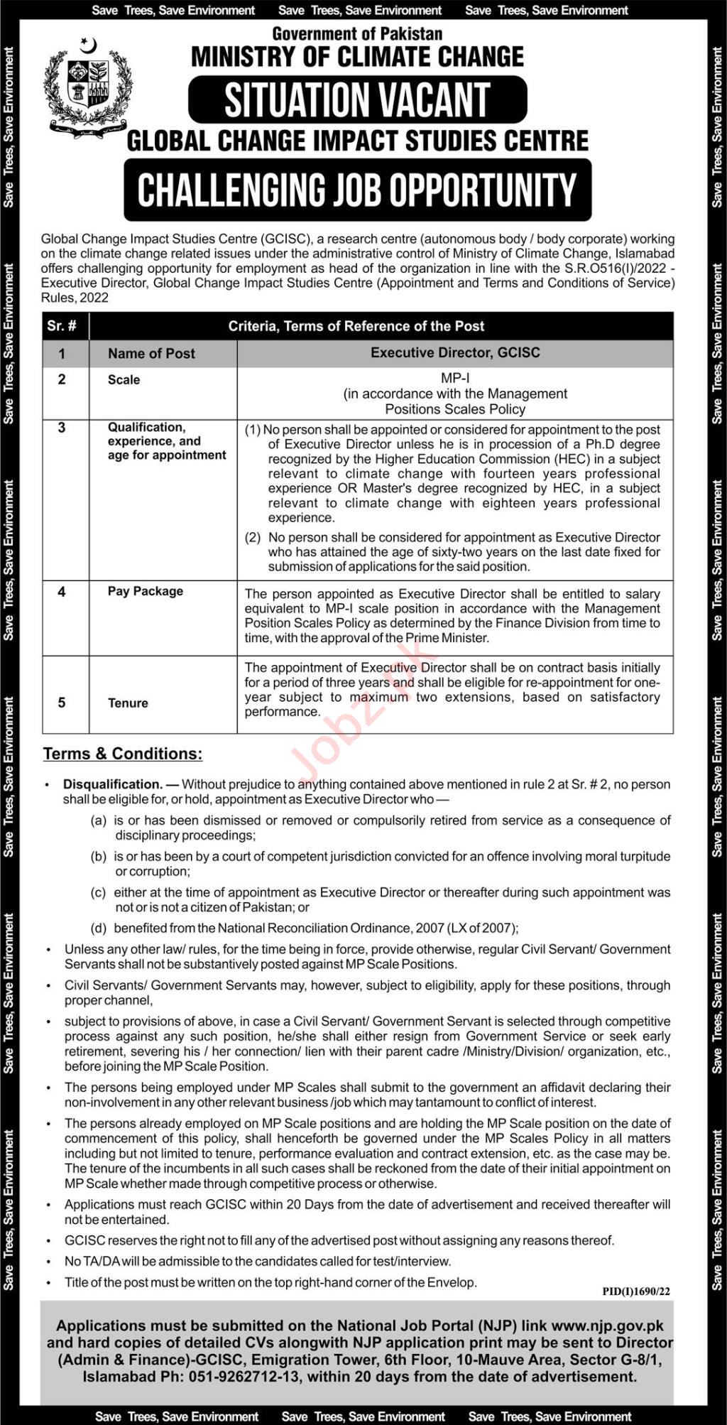 Ministry of Climate Change is looking for candidates for following posts as per job advertisement published in daily Express Newspaper of September 18, 2022 for location Islamabad, islamabad Islamabad Pakistan: