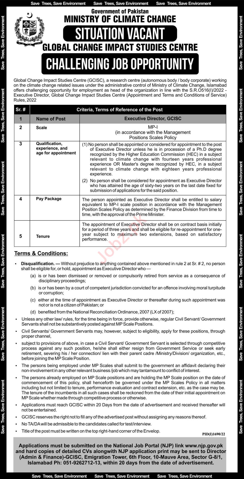 Vacancies in Ministry of Climate Change Advertisement September 2022