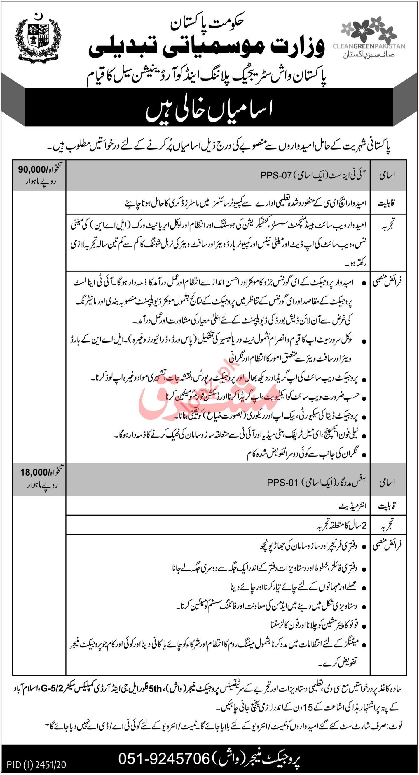 Vacancies in Ministry of Climate Change Advertisement November 2020