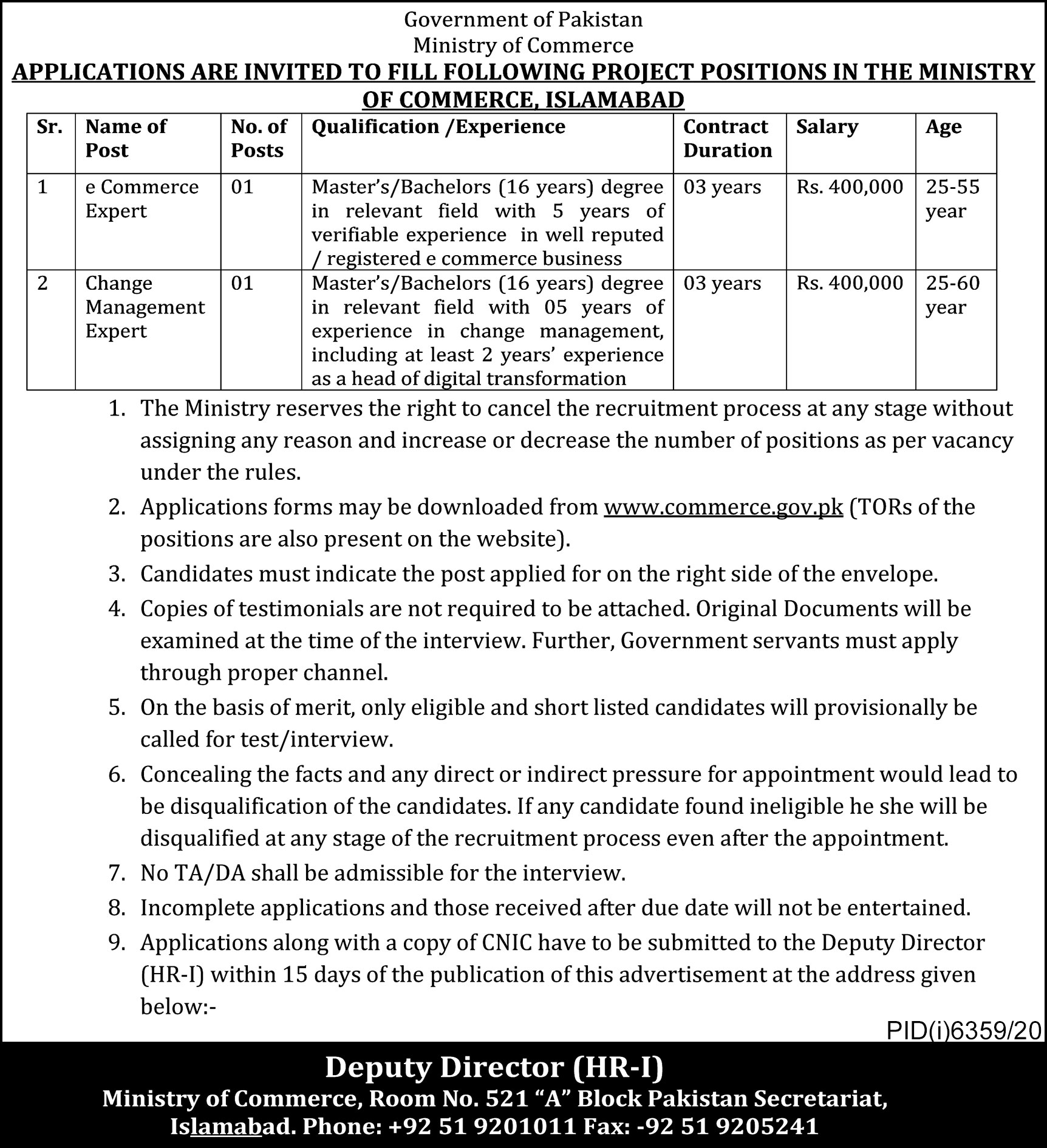 Vacancies in Ministry of Commerce Advertisement May 2021
