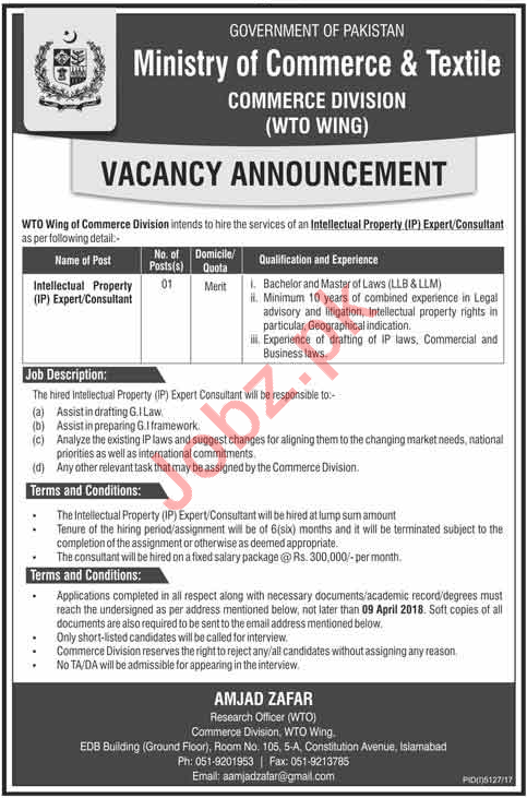 Ministry Of Commerce & Textile Pakistan Jobs 2018 Consultant